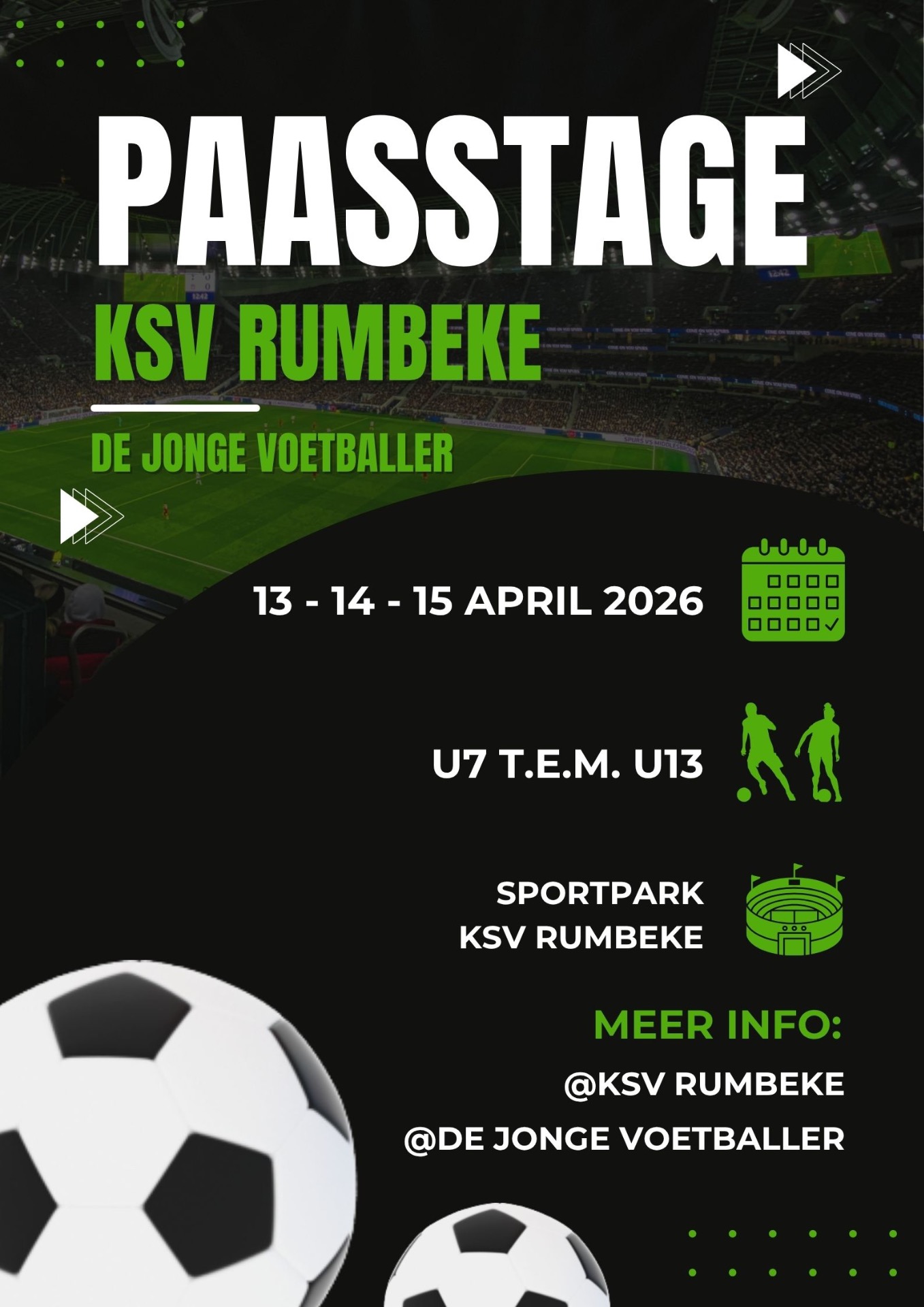 In samenwerking met KSV Rumbeke organiseren we in de paas- en zomervakantie een voetbalstage. Gedurende meerdere dagen werk je onder begeleiding van gediplomeerde trainers. Uitdagende trainingen waarbij FUN centraal staat.